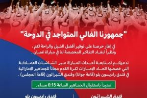 阿联酋足协官方写道:“我们热切希望为您提供最好的观赛方式和舒适的环境,并且由于分配给我们对阵阿曼的比赛门票已经售罄。